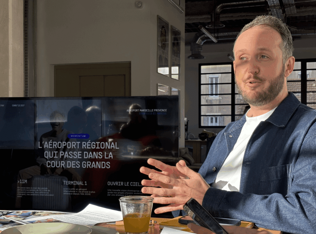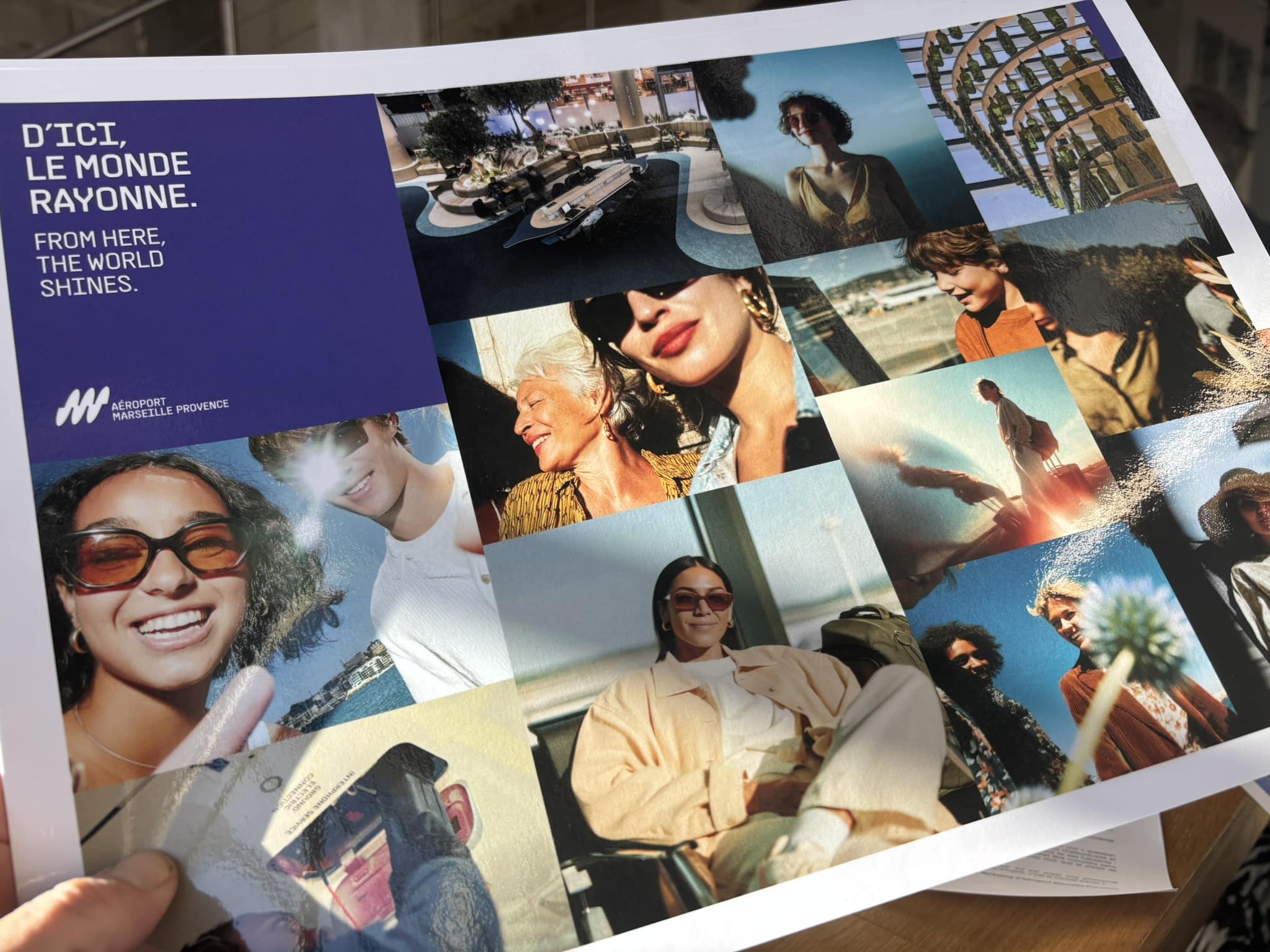 Fruit d’un travail d’une année, le nouveau visuel et la nouvelle signature, « D’ici, le monde rayonne », visent d’abord à acter le changement de dimension de l’aéroport depuis qu’il a atteint les 10 millions de passagers en 2019 (11,1 millions en 2024, 4e aéroport français). L’Aéroport Marseille Provence, plutôt classé d’aéroport régional considère en effet désormais avoir rejoint la catégorie des grands aéroports européens. « Notre trafic est d’ailleurs à 70% international » insiste Thomas Busser.