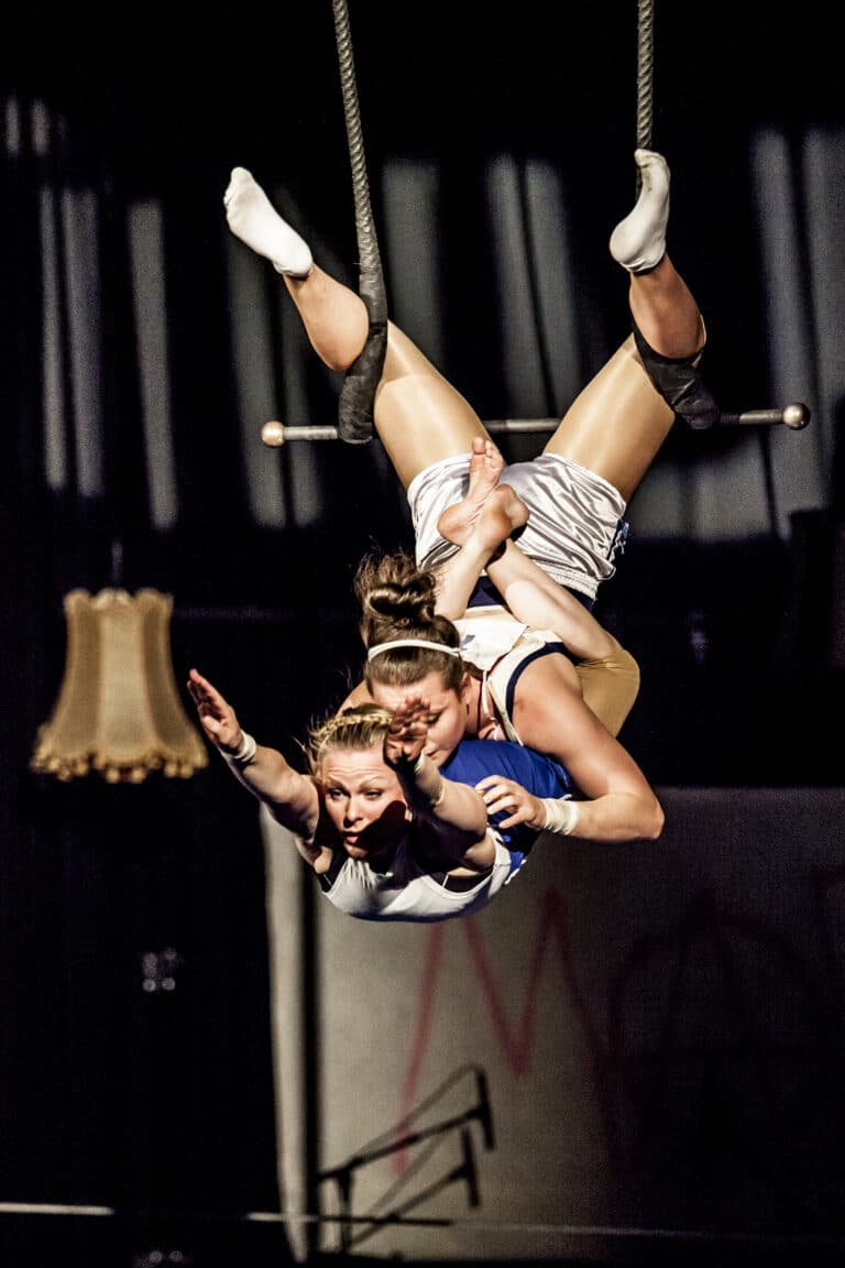 À Miramas, changement de ton avec Mad in Finland du Galapiat Cirque, accueilli au Théâtre La Colonne. Huit artistes finlandaises y racontent leur pays natal avec humour et énergie, à travers une succession de tableaux inspirés de l’imaginaire nordique. Trapèze, suspension capillaire, fil et musique live servent un récit généreux, oscillant entre nostalgie douce et éclats de rire, accessible dès le plus jeune âge.