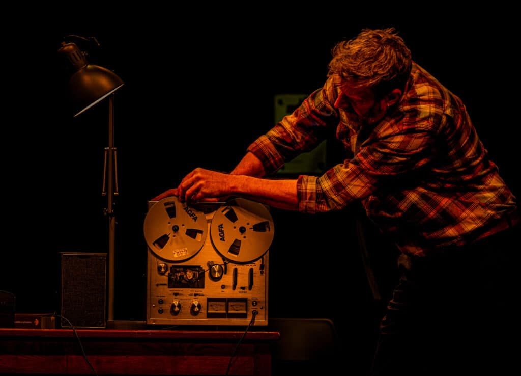 Écrite par Karin Serres et mise en scène par Annabelle Sergent, la pièce repose largement sur le son. Enregistrements, bandes magnétiques et voix construisent un univers immersif, où la mémoire vacille et où le doute s’installe.