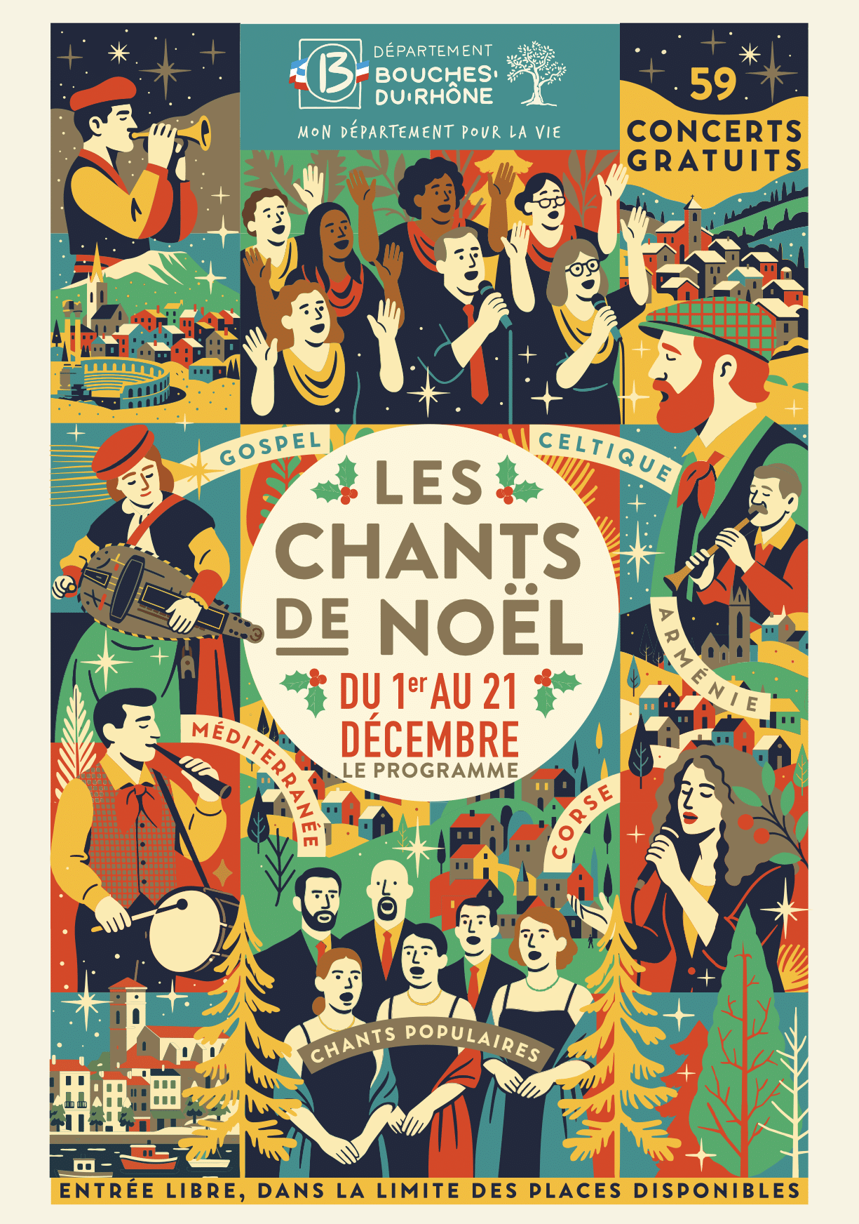 Jusqu’à dimanche, le Département des Bouches-du-Rhône continue de déployer sa grande tournée des Chants de Noël, avec, depuis le 1er décembre, 59 concerts gratuits programmés dans 34 communes. Un rendez-vous bien installé dans le calendrier de l’Avent, qui fait dialoguer musiques sacrées et populaires, traditions régionales et répertoires venus d’ailleurs.