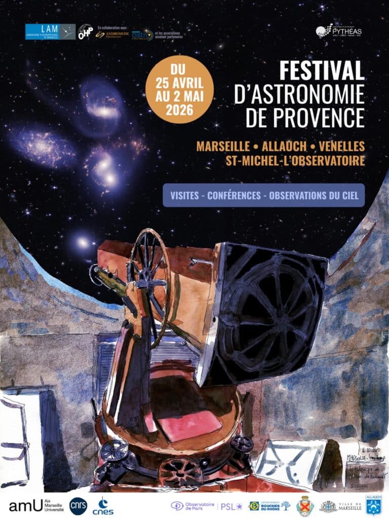 Avis aux amateurs du ciel : le Festival d’astronomie de Provence revient dès ce week-end, et jusqu’au 2 mai, avec une série de rendez-vous entre Marseille, Allauch, Venelles et Saint-Michel-l’Observatoire. Porté par le Laboratoire d’Astrophysique de Marseille, l’événement propose une parenthèse hors du temps, avec des conférences, des visites de sites scientifiques et surtout, des observations du ciel.