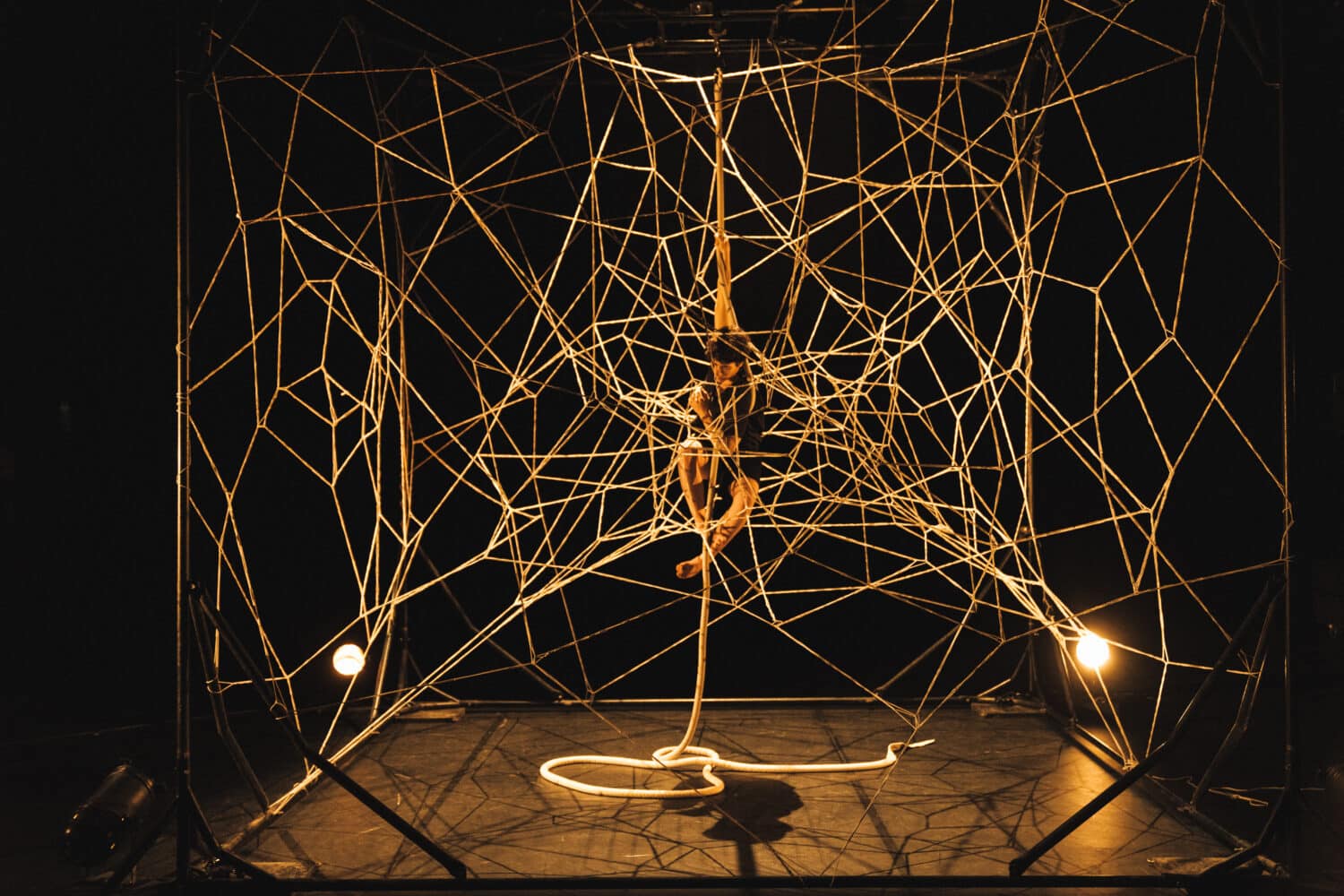 À la croisée du cirque et des arts visuels, le spectacle s’appuie sur une grande sculpture de fils tendus, dans laquelle l’artiste évolue avant d’inviter le public à entrer dans l’expérience. Inspirée par la notion bouddhiste d’impermanence, la performance explore la destruction, le vide et la reconstruction collective, dans un dispositif qui brouille la frontière entre la scène et la salle.