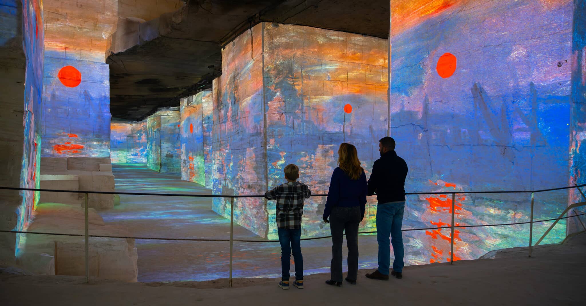 Des paysages normands aux jardins de Giverny, en passant par Londres ou la Méditerranée, le parcours retrace les grands jalons de la carrière de Monet, ses lieux de création et ses séries emblématiques. Les toiles s’animent sur les parois monumentales de la carrière, portées par une mise en musique immersive qui accentue les variations de lumière, de couleur et de matière chères à l’artiste.