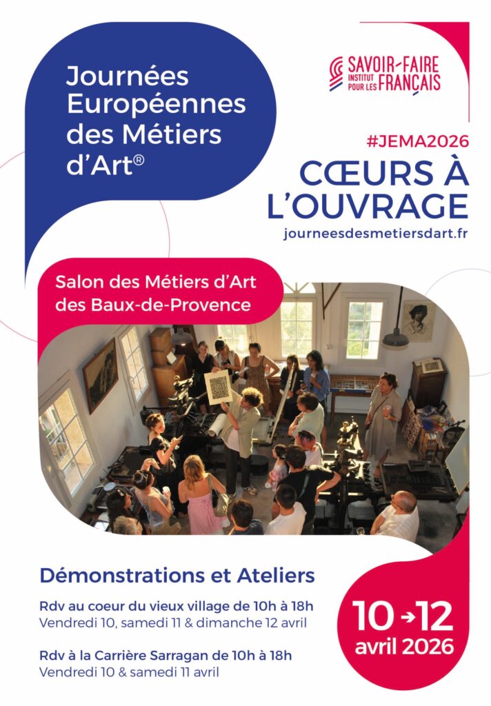 Cap sur les Alpilles pour la 4e édition du Salon des métiers d’art, organisée du 10 au 12 avril aux Baux-de-Provence. Pendant trois jours, une trentaine d’artisans investissent différents lieux du village. Démonstrations, ateliers et rencontres permettent de découvrir des savoir-faire liés au bois, à la pierre, au métal ou encore au livre.