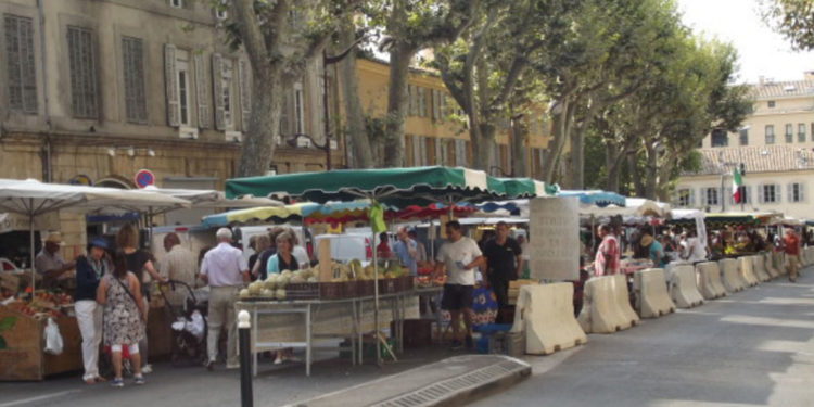 Le marché qui tenait habituellement ses quartiers sur les places des Prêcheurs, de Verdun et de la Madeleine les mardis, jeudis et samedis a été déplacé dans la partie ouest du centre-ville, de façon éclatée. Dans un communiqué diffusé le 26 août, la ville d’Aix précise que «Le marché à la brocante (29 forains) sera installé place des Combattants d’Afrique du Nord (au bas du Cours Mirabeau) et sur le haut de l’avenue Victor-Hugo, sur le trottoir, côté cinémas (jusqu’à la rue Cardinale). Le marché de l’artisanat (43 forains) sera installé sur le lieu dit« espace Cézanne » (place de la Rotonde, derrière la statue de Cézanne)».