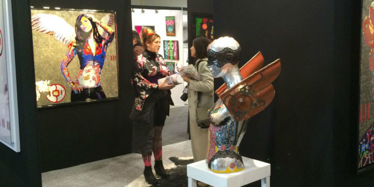 A l’entrée un jardin de sculptures éphémères monumentales interpelle déjà les visiteurs (12000 personnes attendues sur les quatre jours de l’exposition). Jusqu’à dimanche les visiteurs sont appelés à voter pour leur artiste préféré pour l’attribution du prix du public qui aura lieu lundi 16 mars au matin. Les gagnants de l’année  dernière, Florence Cherel, plasticienne et Sébastien Woznica, sculpteur sont encore présents cette année et méritent vraiment le détour. Autre prix, celui décerné aux étudiants de l’Ecole supérieure de design Esdac par les artistes exposants. Verdict lundi matin également.