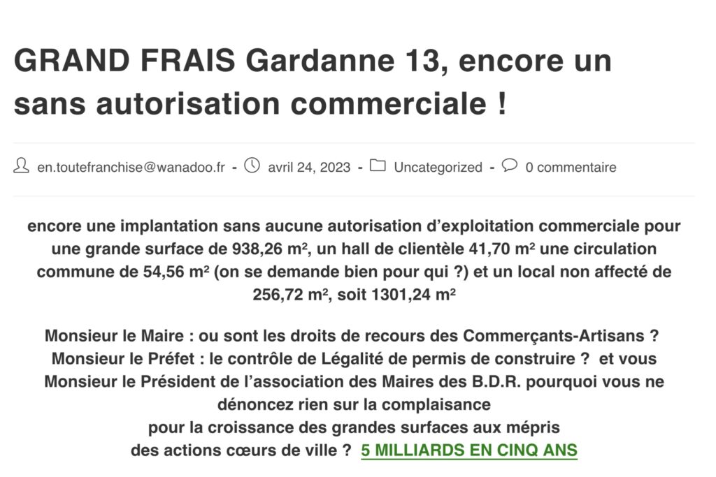 L’association s’appuie sur une jurisprudence établie par le Conseil d’Etat en novembre 2022 dans un cas similaire impliquant la société Poulbric. Dans cette affaire, les sas et halls d’entrée d’un magasin Bricomarché avaient été considérés comme faisant partie de la surface de vente. Cette précédente décision renforce la position d’En Toute Franchise dans son accusation contre le permis de construire du futur Grand Frais. Si cette jurisprudence devait s’appliquer au projet de Gardanne, la surface de vente du supermarché atteindrait 1036,07 m², obligeant ainsi une consultation de la commission départementale d’aménagement commercial pour obtenir l’autorisation d’exploitation commerciale.