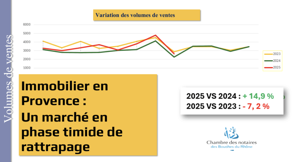 Les chiffres fournis par les notaires des Bouches-du-Rhône (base Perval, soit l’ensemble des actes de vente immobilière qui sont signés chez les notaires, ndlr), actualisés à fin juin 2025, témoignent d’un léger frémissement dans l’activité comme dans l’évolution des prix. Mais les situations sont contrastées, notamment à Marseille avec des différences très importantes selon les arrondissements.