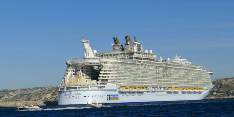 [Tourisme] Le plus grand et plus spectaculaire navire au monde, Allure of the seas affrété par la compagnie de croisière américano-norvégienne Royal Caribbean International débarque à Marseille mardi 26 mai au matin. On devrait pouvoir apercevoir Allure of the seas (notre photo) aux alentours de 8h du matin demain. Long de 361 m, le navire peut contenir à son bord quelque 8000 personnes !