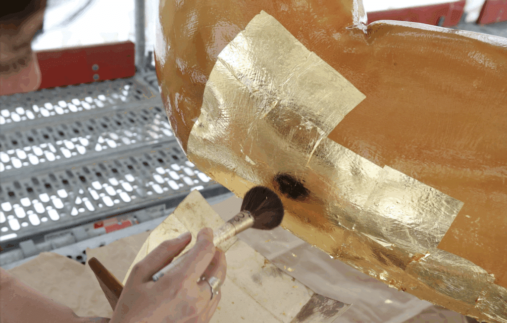 Cette étape majeure du chantier de restauration intervient alors que la dorure touche à sa fin, après la pose de 30 000 à 40 000 feuilles d’or au cours du mois de septembre.