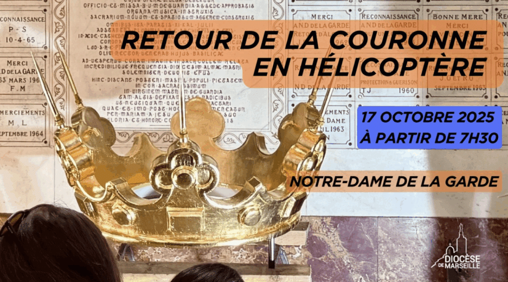 Depuis le 13 août 2025, pour la première fois depuis 1870, la couronne de la statue monumentale de Notre-Dame de la Garde a quitté le point le plus haut de la basilique rappelle le diocèse de Marseille poursuit le Diocèse su son site internet. Après une restauration minutieuse confiée à un compagnon chaudronnier aixois, la couronne est revenue au sanctuaire pour y être redorée par les artisans des Ateliers Gohard, sous les yeux du public. Un atelier exceptionnel devait se tenir dans la basilique du samedi 11 au jeudi 16 octobre inclus. Les visiteurs ont ainsi pu admirer la couronne restaurée, puis le travail de la doreuse. La couronne, entièrement redorée, est restée exposée au public le 16 octobre, avant son héliportage prévu ce vendredi 17 octobre explique encore le Diocèse.