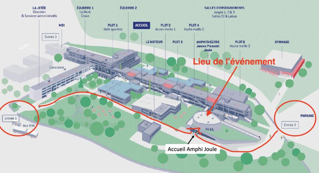 Des places de stationnement gratuites sont disponibles aux abords de l’école et sur le parking du Technopôle (selon disponibilité).