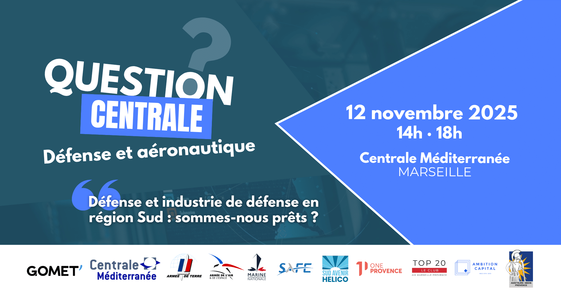 Gomet’ et Centrale Méditerrannée vous présentent Question centrale, l’événement consacré aux secteurs de la défense et de l’aéronautique. Venez rencontrer les grands acteurs militaires, industriels et institutionnels du territoire !