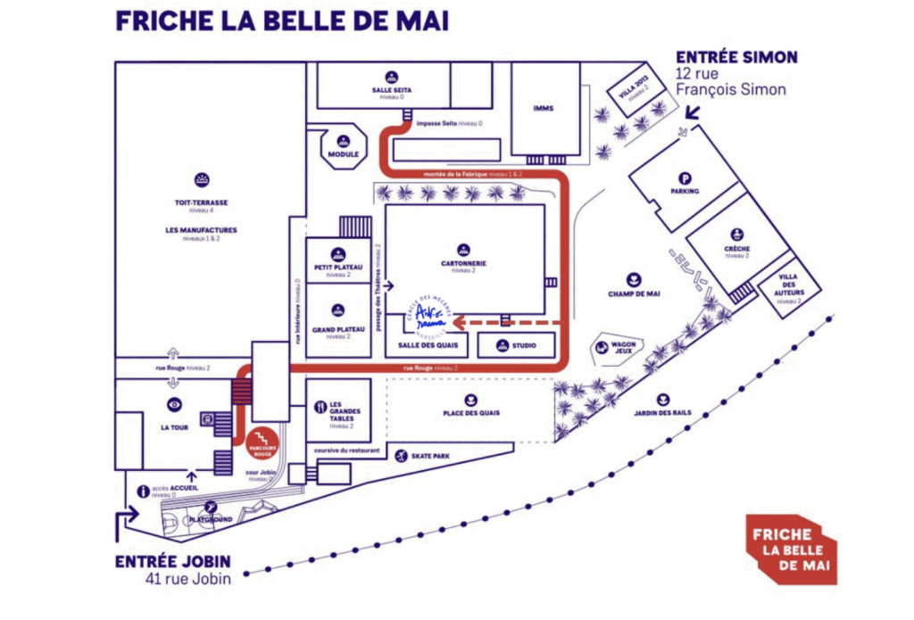 Le plan d’accès à la salle des quais à côté de la Cartonnerie ci-dessous :