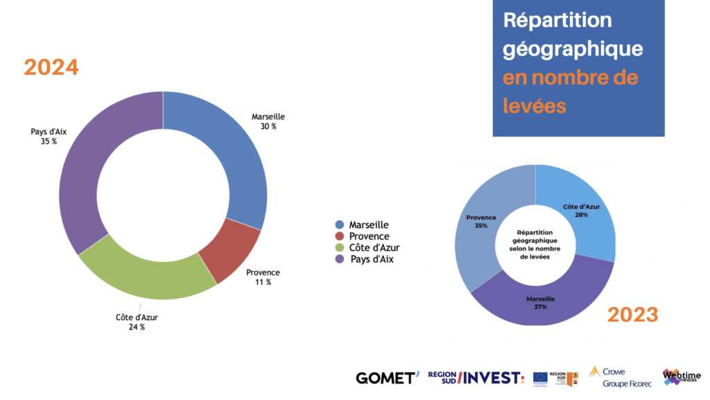 Gomet’ Media a dévoilé ce matin à Marseille à La Coque le bilan des opérations de levées de fonds en région Sud au cours de l’année 2024. Les montants levés sont en forte baisse avec un total de 311 millions d’euros, soit une baisse de 43% par rapport à 2023. Mais en nombre d’opérations, le chiffre est en croissance avec 46 levées contre 43 en 2023.