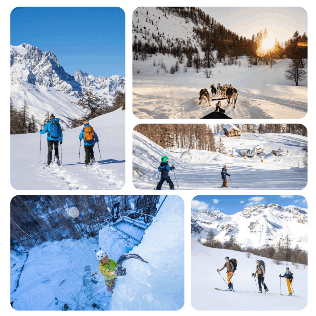 Puy Saint-Vincent, ensuite : la station sportive et familiale, avec ses forêts bordant les pistes, ses panoramas ouverts et son altitude lui offrant une garantie neige, offre des pratiques variées entre ski de pistes (75 km de pistes d’accessibles à plus engagées) et ski hors pistes, mais également autour de nombreuses activités comme les balades en raquettes, les chiens de traîneau, le ski de fond et la marche nordique.