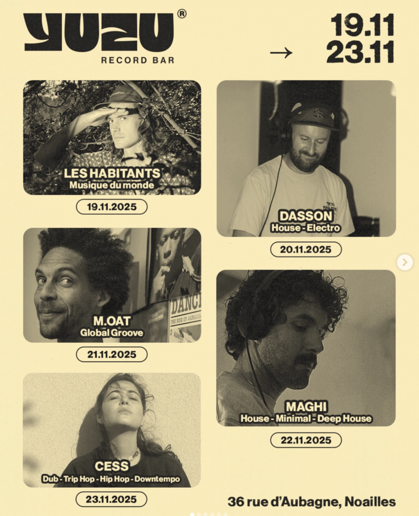 Dès 22H @ Yuzu Record Bar – 36, rue d’Aubagne — 13001 Marseille — Entrée libre.