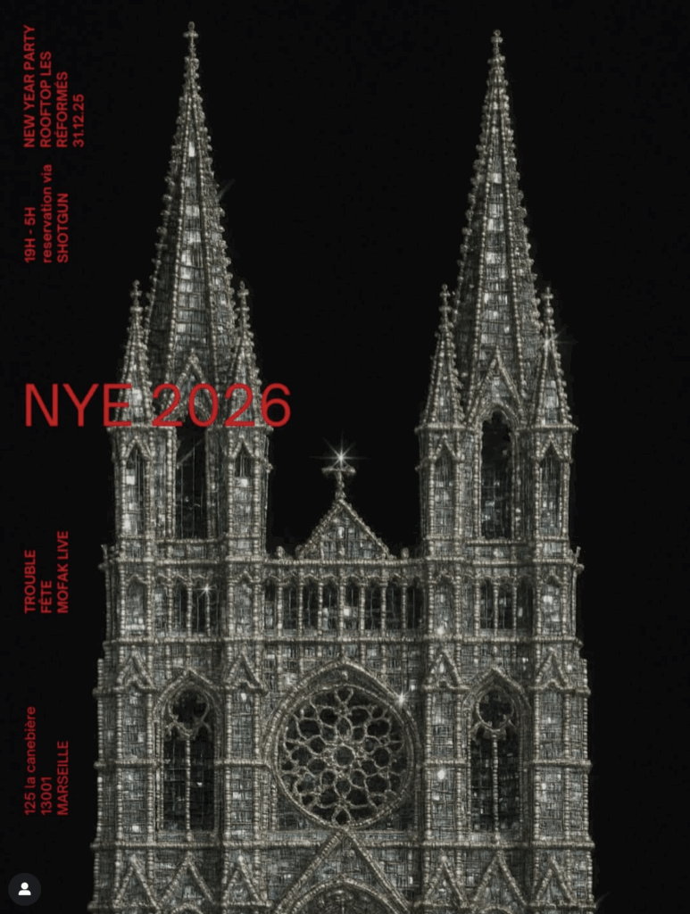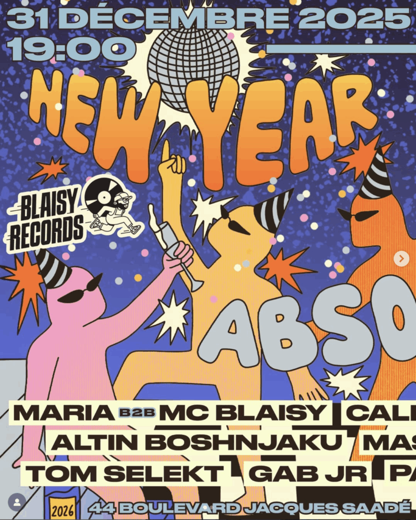 Le plus long réveillon de la sélection avec pas moins de 20h de festivités ! C’est à l’Absolem, face à la mer et aux paquebots qui attendent de larguer les amarres que le label marseillais disco-funk Blaisy Record a choisi de fêter son nouvel an taille XXL ! Rendez-vous à l’Absolem le 31 décembre 2025 à partir de 19h, jusqu’à 15h le lendemain pour célébrer ensemble ce début d’année 2026 ! Au programme des b2b : celui entre Maria et Mc Blaisy qui ouvrira la soirée deux heures durant, et une foultitude de DJ-sets dont le tout dernier, celui de Sarah Neptune bouclera l’event aux heures chaudes de l’après-midi. On me souffle dans l’oreillette qu’il ne reste plus que des places pour l’after (5h du mat/15h) à 16,50 € sur shotgun.