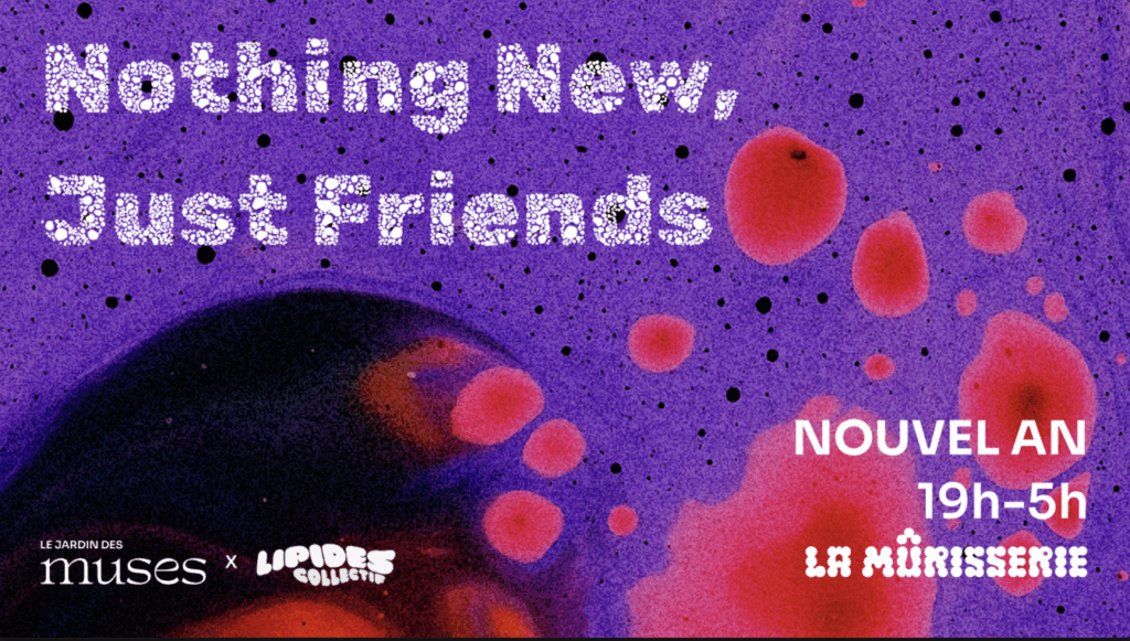Pourquoi dépenser plus ? La Murisserie, le collectif de DJs Lipides et le Jardin des Muses pour la déco’ botanique proposent le réveillon le plus accessible du marché. Pour seulement une dizaine d’euro, ils proposent un 19h/5h du mat électro riches en acides gras et autres breaks savoureux, « de la house à la trance » clament-ils. C’est bien évidemment complet. Une liste d’attente est ouverte. Inscris-toi et croise les doigts !