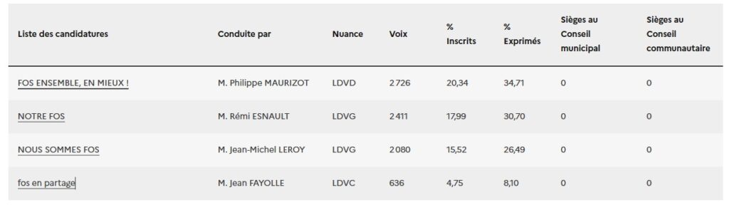 Surprise à Fos-sur-Mer, une ville historiquement ancrée à gauche, où Philippe Maurizot (DVD), arrive en tête au premier tour avec 34,71 % des voix. Le candidat LR, qui avait obtenu 24,28 % des voix en 2020 gagne plus de 10 points en six ans et profite à plein de la fragmentation d’une gauche orpheline de René Raimondi, le maire historique qui avait repris du service en 2022 suite au décès de son successeur Jean Hetsch.