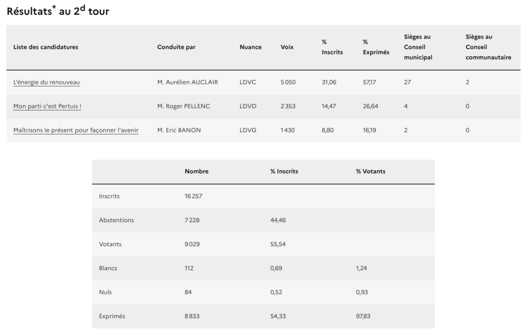 Ce résultat marque un tournant politique à Pertuis. Après 18 ans de mandat de Roger Pellenc, la commune bascule vers une nouvelle équipe municipale portée par Aurélien Auclair.