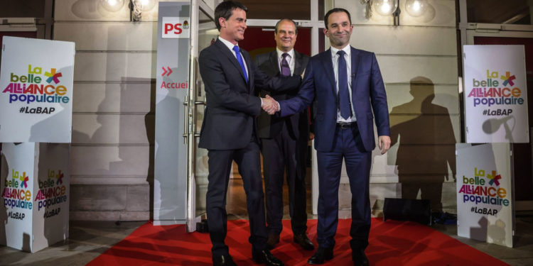 Alors que les bureaux de vote sont encore en train de dépouiller, les résultats partiels donnent au niveau national Benoît Hamon en tête avec 58,65% des suffrages, devant Manuel Valls qui cumule 41,35% des voix. Dans la métropole, la tendance est identique, voire même plus appuyée. Les deux hommes se sont serrés la main au siège du Parti socialiste peu après l’annonce des résultats partiels (photo PS).