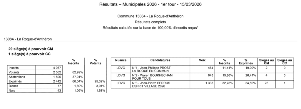 Tous les résultats communiqués lors de la soirée électorale seront provisoires jusqu’à la publication des résultats définitifs, proclamés par les maires sortants de chaque commune.