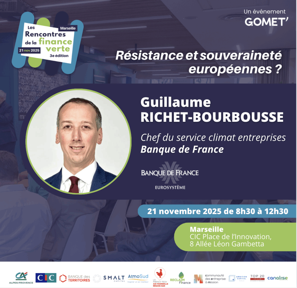 Guillaume Richet-Bourbousse, responsable du Service Climat Entreprises de la Banque de France présentera l’état d’avancement de ce vaste chantier aux Rencontres de la finance verte ce vendredi 21 novembre. Après plus de 15 ans d’expérience à la Banque de France, Guillaume Richet-Bourbousse manage une équipe de 30 personnes dédiées au programme indicateur climat de la Banque de France. Il interviendra lors de la conférence dédiée de 11h30 à 12h15. Programme détaillé et inscription.