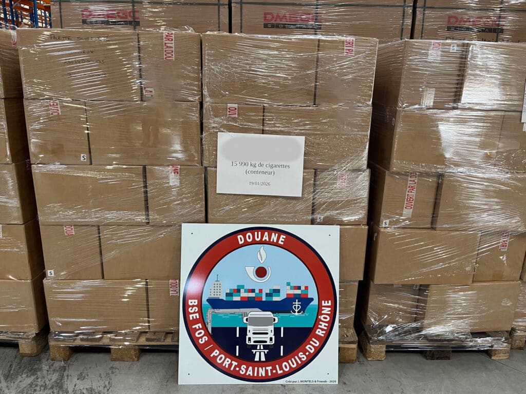 Une saisie record. Les douaniers marseillais ont intercepté, lundi 19 janvier, sur le port de Fos-sur-Mer, une cargaison de près de 16 tonnes de cigarettes de contrebande, révèle ce vendredi 30 janvier la Direction générale des douanes, résultat d’une « coordination étroite » entre les différents services douaniers portuaires, en lien direct avec les fonctions de renseignement et d’analyse.