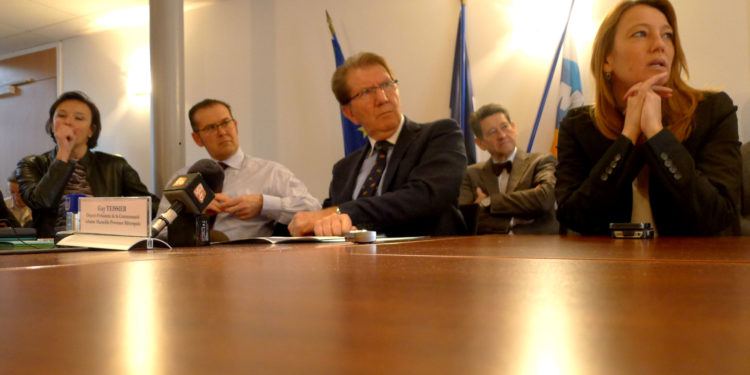 [11h, Marseille, Pharo] Voeux à la presse de Guy Teissier, président de Marseille Provence Métropole (notre photo entouré des maires de secteur de la ville).