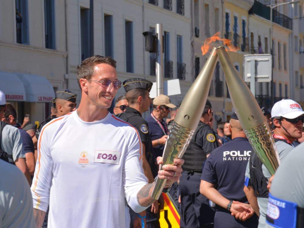 Dans l’enceinte du parc, d’autres figures sportives sont au rendez-vous, à commencer par le célèbre basketteur Tony Parker, qui portait la flamme sur la Corniche quelques minutes plus tôt. Il était à l’heure pour le relais, malgré son retard la veille, pour la cérémonie d’ouverture (voir la vidéo ci-dessus) : « Sept heures au lieu de trois pour faire le trajet Lyon-Marseille, je m’en souviendrai ! J’aurais dû faire le speech avec Thomas Pesquet sur scène mais je n’ai malheureusement pas pu arriver à temps … » relate la légende du basket, décontractée malgré tout derrière ses lunettes noires. Ce dernier prend ensuite la pose devant les marches du palais avec d’autres relayeurs de la flamme, l’autre basketteur relayeur Nando de Colo et le maire de Marseille Benoît Payan.