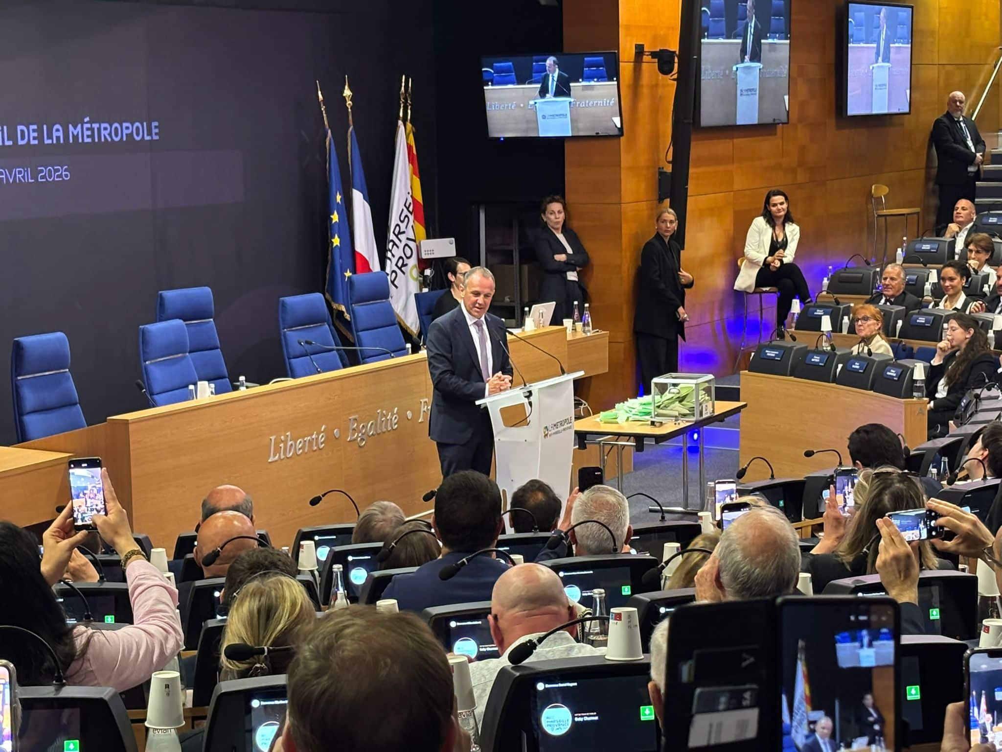 Le maire de Martigues, Gaby Charroux, doyen d’âge, préside la séance. Il tient à rendre hommage à Martine Vassal, l’ancienne présidente, qui est applaudie.